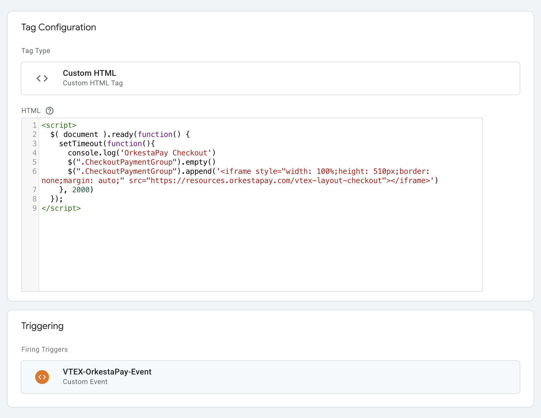 Para que su tienda VTEX funcione correctamente con OrkestaPay Checkout, se requiere de una configuración adicional que se gestiona a través de Google Tag Manager.