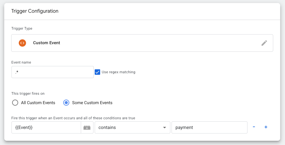 - Nombre del evento: .* (marcar checkbox de expresiones regulares)